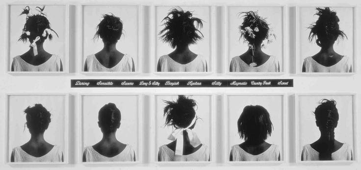 Lorna Simpson’s practice as a conceptual photographer and multimedia artist changed the way we understand representation, race, and the body. Her use of language and imagery unravels the limitations placed on Black women in visual culture. What I admire about Simpson is her insistence on subtleties. She doesn’t scream, but she disarms.